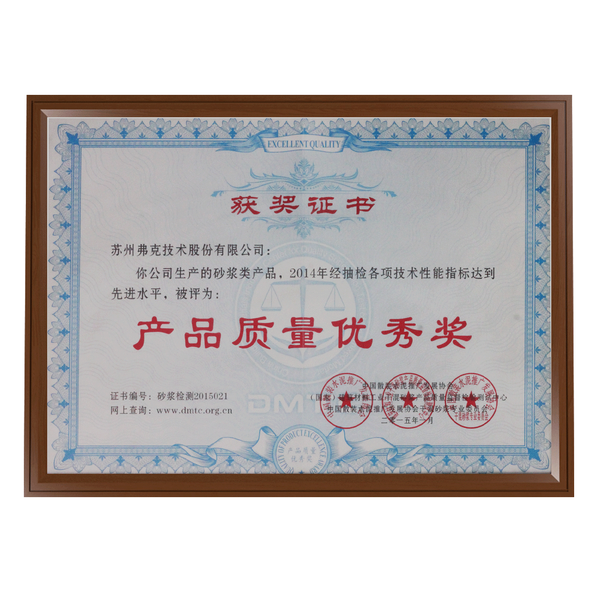 產品質量優秀獎證書