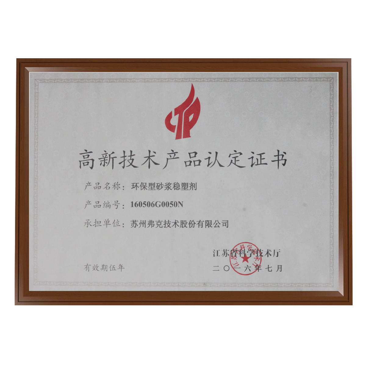 高新技術產品認定書