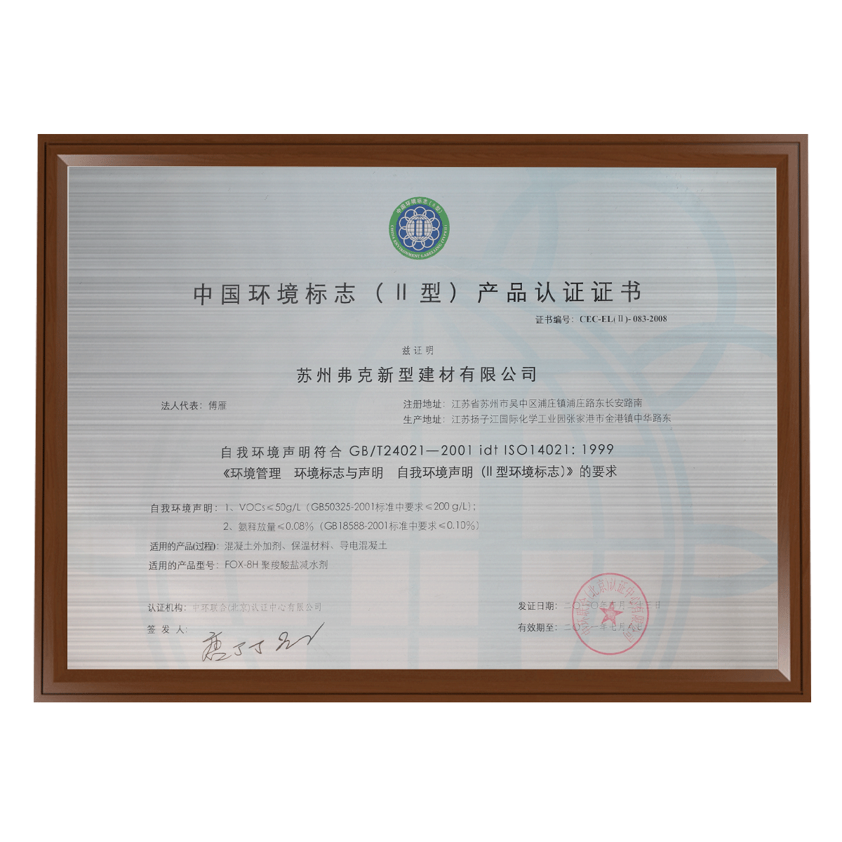 中國環境標志產品認定書